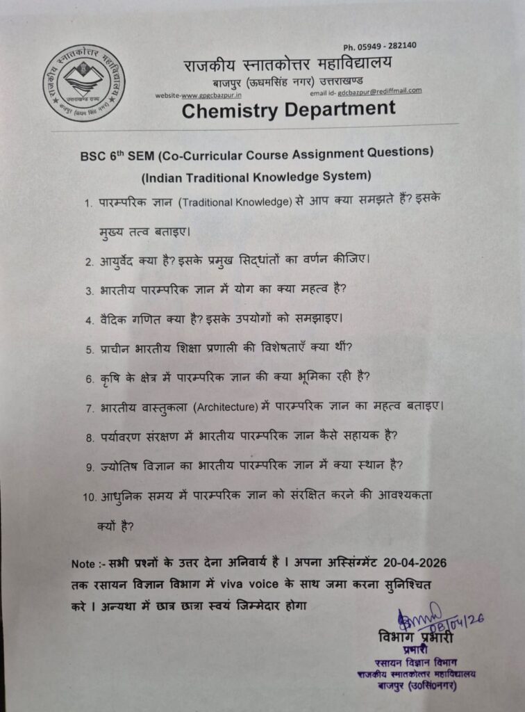 कला एवं वाणिज्य संकाय के प्राध्यापकों से निवेदन है कि VI sem Assignment को छात्र छात्राओं के ग्रुप में प्रचारित प्रसारित करने का कष्ट करें. / Notices / By neerja